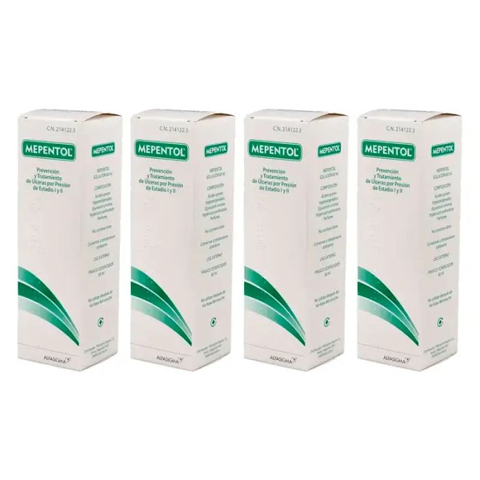 Mepentol Pulverizador para Úlceras, 4 x 60 ml Es un producto en forma de pulverizador indicado para la disminución de las afecciones cutáneas causadas por las úlceras. Está formulado con ingredientes que aportan beneficios a la piel.Este pulverizador viene en una presentación de 100 ml. Su uso es local, se aplica directamente en la piel. Es un producto idóneo para el tratamiento y la prevención de úlceras por presión tipo I y II. También sirve para tratar las quemaduras de la piel producidas por la exposición prolongada al sol. Además, ayuda a aliviar las irritaciones causadas por el roce del pañal en los niños.Para obtener mejores resultados es aconsejable acompañar el uso de Mepentol con otras acciones, tales como cambiar de manera frecuente la postura de la persona afectada.Su modo de empleo es relativamente fácil, lo cual facilita el trabajo de los cuidadores de la persona, bien sean profesionales de la salud o familiares.El producto está compuesto por ingredientes activos. Es posible la renovación de las células epidérmicas por la acción de los ácidos grasos hiperoxigenados. Estos ingredientes restituyen el film hidrolipídico. Además, crean un escudo ante los microbios y contribuyen con la disminución de los daños ocasionados por los radicales libres.Otro elemento que presenta la fórmula es el Equisetum arvense conocido popularmente como cola de caballo, el cual funciona para mejorar el tono y la elasticidad de la piel. Mientras que el Hypericum actúa como un dermoprotector y es antioxidante.Viene presentado en un envase de 100 ml.Mepentol Pulverizador está indicado para cualquier tipo de piel, incluyendo las que tienen mayor sensibilidad.ContraindicacionesEste producto es solo para uso tópico. No ingerir.