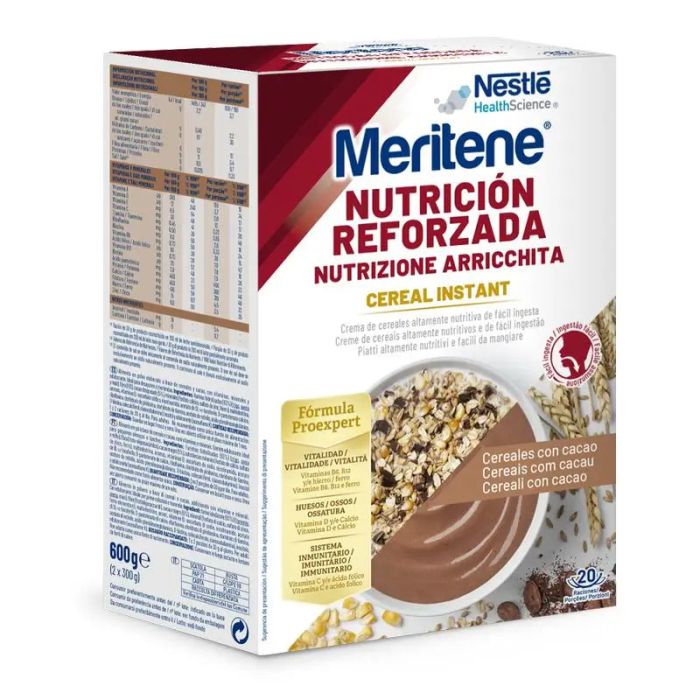 Meritene Cereales con Cacao es un suplemento alimenticio de alto contenido