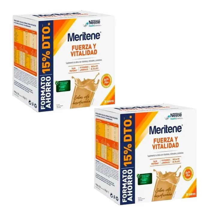 Meritene Fuerza y Vitalidad Café Descafeinado Formato Ahorro Pack 2 x 30 sobres