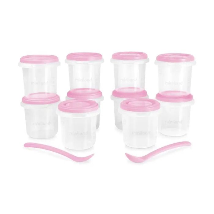 Juego de 10 herméticos con 2 cucharas anatómicas. Conserva, calienta, congela y