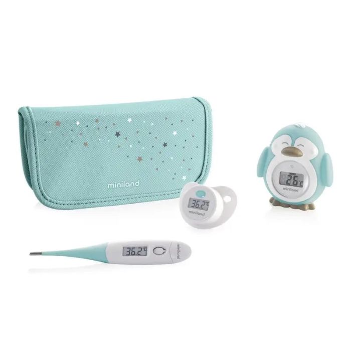 Práctico set de 3 termómetros digitales para diferentes usos thermokit es un set que ayuda a los papás a controlar cómodamente la temperatura de sus bebés y la del agua. Compuesto por tres termómetros: uno corporal con punta flexible, uno con forma de chupete y otro para el baño. Su simpático diseño lo convierte en el kit ideal para regalar. Todo bien recogido y ordenado