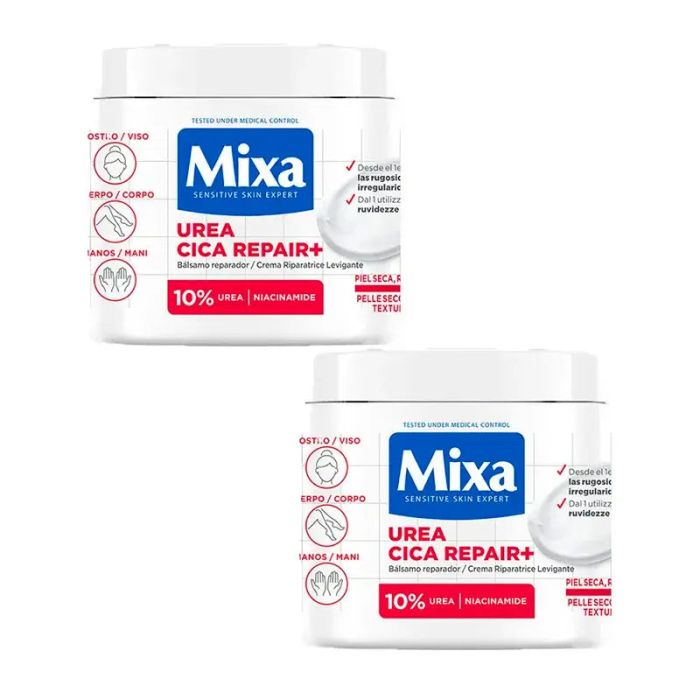 Mixa Duplo Bálsamo Reparador Urea Cica Repair+ en formato de 2 x 400 ml, ideal