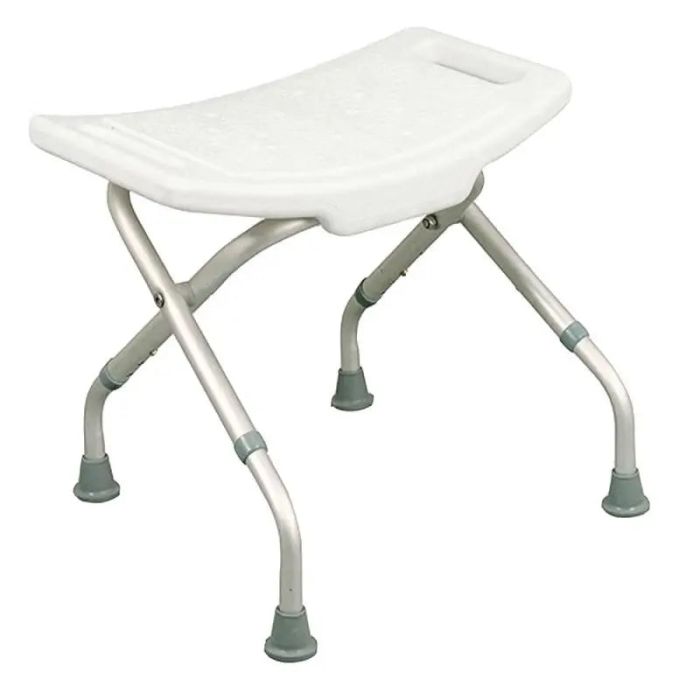 Esta silla de ducha de acero inoxidable sin respaldo es un mueble auxiliar