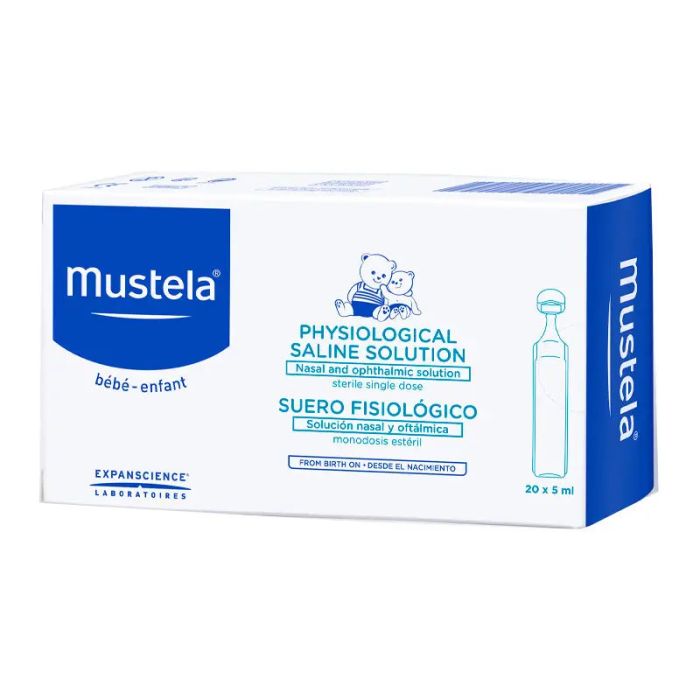 Mustela Suero Fisiológico 20x5 ml es una solución salina para el lavado diario
