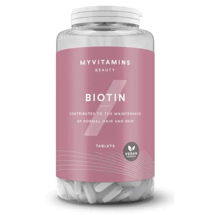 La Biotina de Myvitamins es una fuente natural de vitamina B7, también conocida como biotina, que ayuda a mantener el aspecto del pelo, la piel y las uñas. La biotina es una vitamina B que puede ayudar a mantener la salud del pelo, la piel y las uñas.1 También puede mantener nuestros niveles de energía 2 y la salud cognitiva reforzando las funciones psicológicas en el cerebro. ¿Por qué utilizar un suplemento de biotina? La biotina se puede encontrar de forma natural, pero solo en pequeñas cantidades en huevos, salmón y verduras de hoja. Es una vitamina que nuestro cuerpo necesita para muchas funciones diferentes. Una carencia de esta vitamina puede afectar a nuestros niveles de energía, a nuestra capacidad de procesar información e incluso a nuestra complexión. Como fuente pura, las tabletas de biotina de Myvitamins te garantizan la ingesta suficiente de este nutriente esencial para mantenerte con energía mientras aporta un aspecto más saludable a tu pelo, piel y uñas. PRINCIPALES VENTAJAS Mantiene la salud del pelo, la piel y las uñas 1 Mantiene los niveles de energía 2 Favorece la salud cognitiva 3 Estamos haciendo algunos cambios. Así que si tu etiqueta parece diferente, no te preocupes: los ingredientes son exactamente los mismos