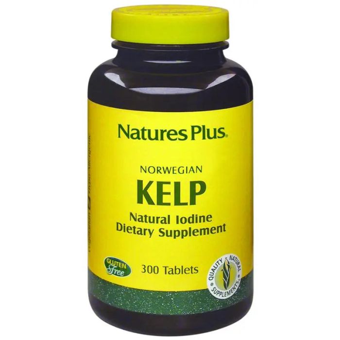 Natures Pl Kelp (Yodo) es un suplemento natural que contiene 300 comprimidos.
