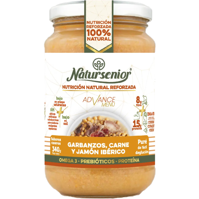 Natursenior Puré Adultos Garbanzos Con Carne Y Jamón Ibérico Con Omega 3Dha+Epa, Prebióticos Y Proteínas. , 340 gr