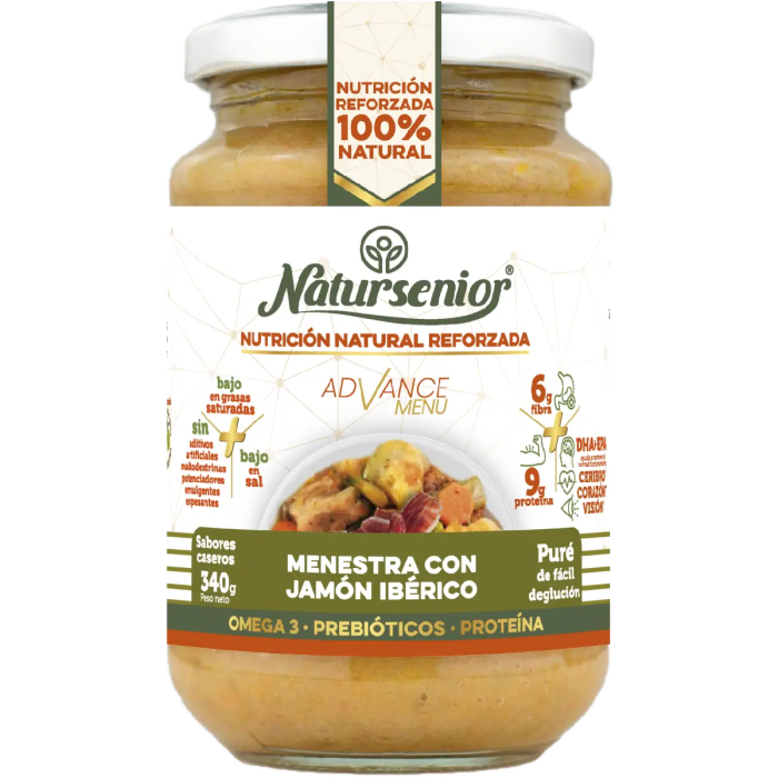 Natursenior Puré Adultos Menestra Con Jamón Ibérico Con Omega 3 Dha+Epa,Prebióticos Y Proteínas. , 340 gr