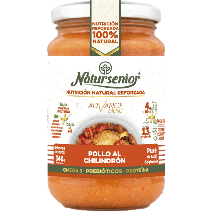 Natursenior Puré Adultos Pollo Al Chillindrón Con Omega 3 Dha+Epa, Prebióticos YProteínas. , 340 gr