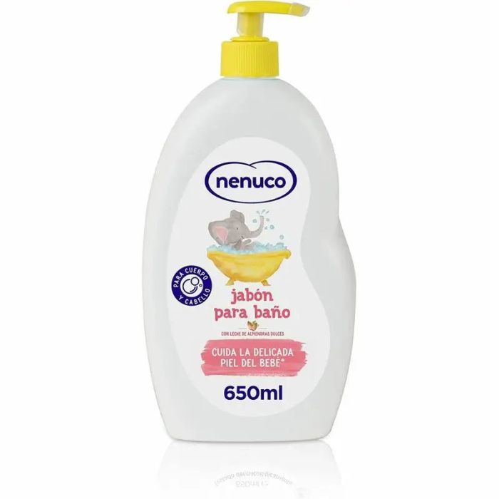 Ingredientes de Nenuco jabón para baño: Aqua, Sodium Laureth Sulfate, PEG-7 Glyceryl Cocoate, Cocamidopropyl Betaine, Cocamide DEA, Sodium Chloride, Parfum, Styrene/Acrylates Copolymer, Glycerin, Polyquaternium-7, Propylene Glycol, Citric Acid, Tetrasodium EDTA, Linalool, Hexyl Cinnamal, Sodium Benzoate, Benzylsalicylate, Limonene, Citronellol, Alpha Isomethylionone, Methylisothiazolinone, Prunus Amiygdalus Dulcis Fruit Extract, Prunus Amygdalus Dulcis Oil, Zea Mays Starch, Iodopropynyl Butylcarbamate, Gluconolactone, Polyglyceryl-4 Caprate, Tocopherol, Xanthan Gum, Potassium Sorbate, Calcium Gluconate.