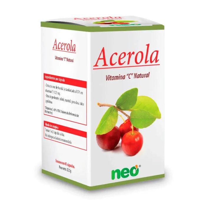 Neo acerola, 45 cápsulas, es un complemento alimenticio rico en vitamina C que