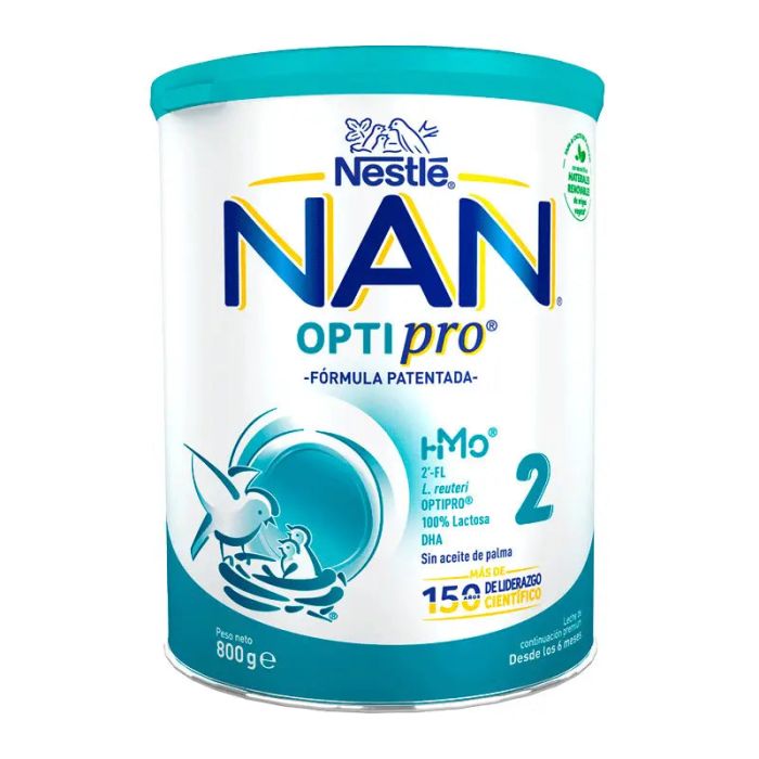 La Nan OPTIPRO® 2 de Nestlé, es una leche adecuada con la última tecnología Nestlé, que aporta un buen desarrollo físico y mental en bebés con 6 meses en adelante, contiene perfil proteico optimizado, oligosacárido HMO (2’-FL) con estructura idéntica a los que se encuentran en la leche materna, probióticos y DHA, además está enriquecido con Zinc, Hierro y Vitaminas A, C y D.