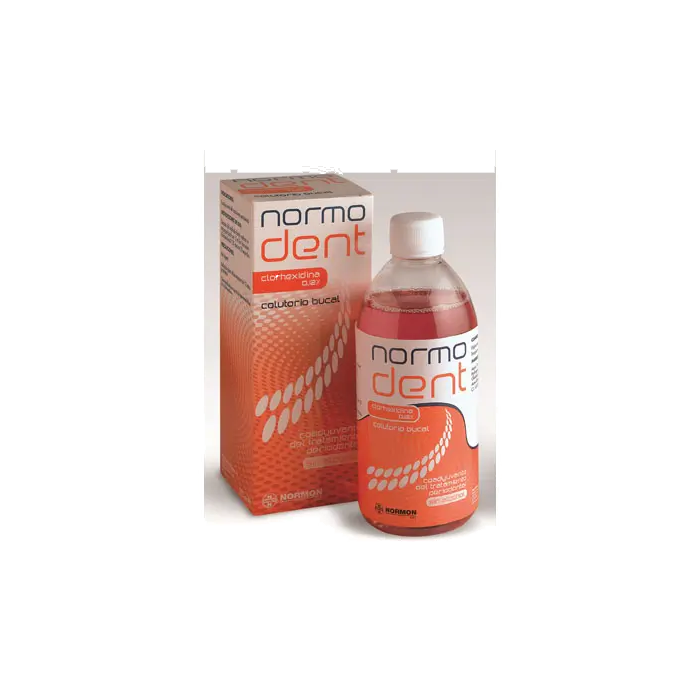 Normodent Clorhexidina 0,12% Colutorio contiene: Aqua, propylene glycol, glycerin, PEG-40 Hydrogenated castor oil, sodium benzoate, sodium methylparaben, aroma, chlorhexidine, digluconate, potassium acesulfame, citric acid, CI 14720.