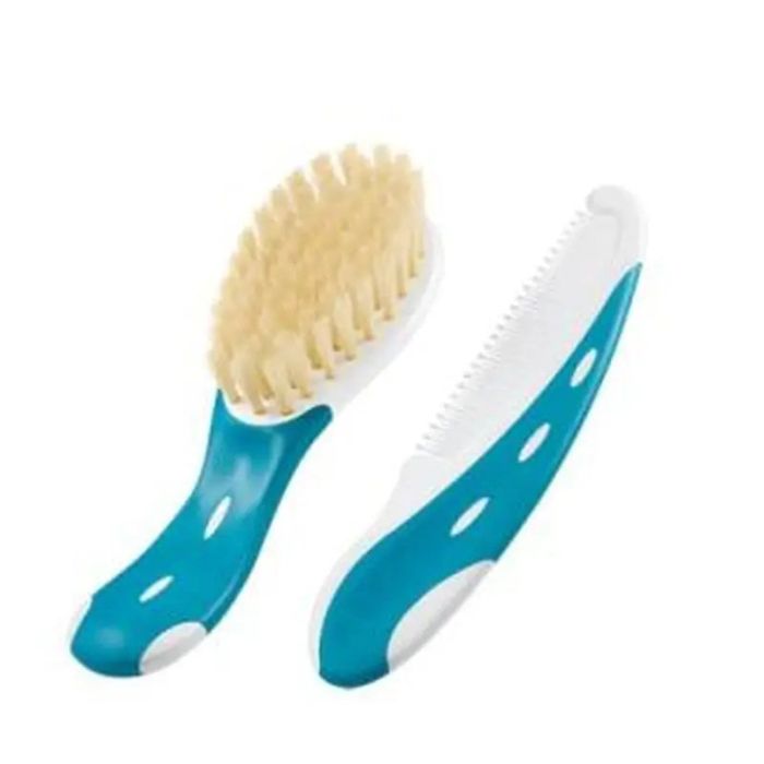 Cepillo y peine para bebé Nuk en color azul.