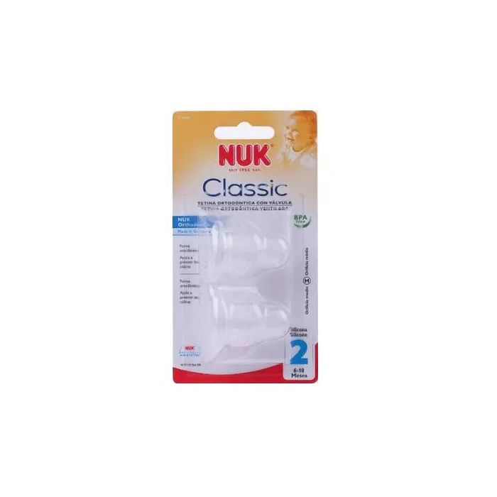 La tetina Nuk boca estrecha T.2 de leche de silicona viene en un paquete de 2