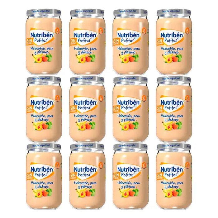 Nutriben Potito Melocotón, Pera Y Platano , 12 x 235 gr