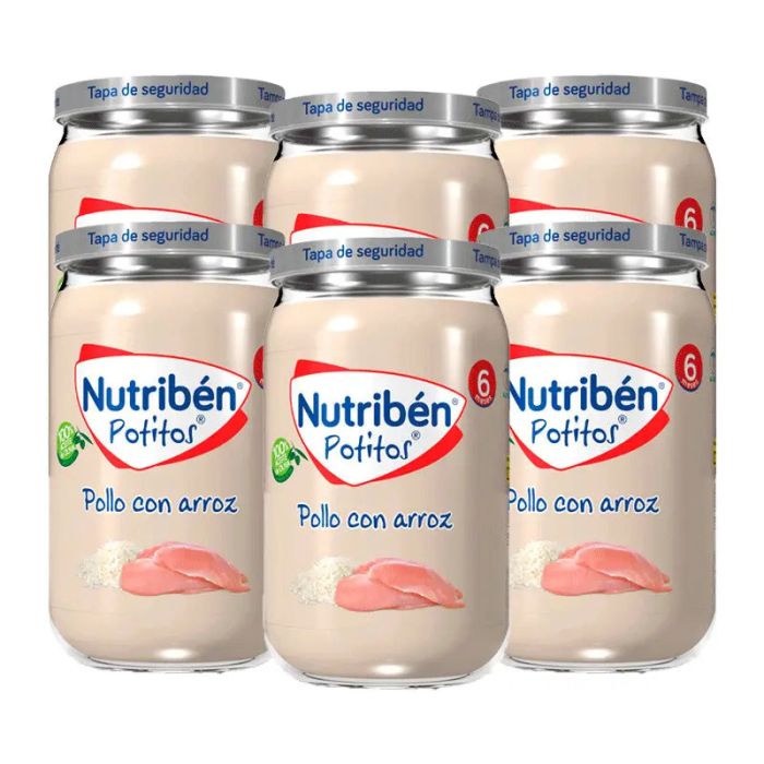 Nutriben Potito Pollo Con Arroz, 6x235 gr está formulado para bebés a partir de