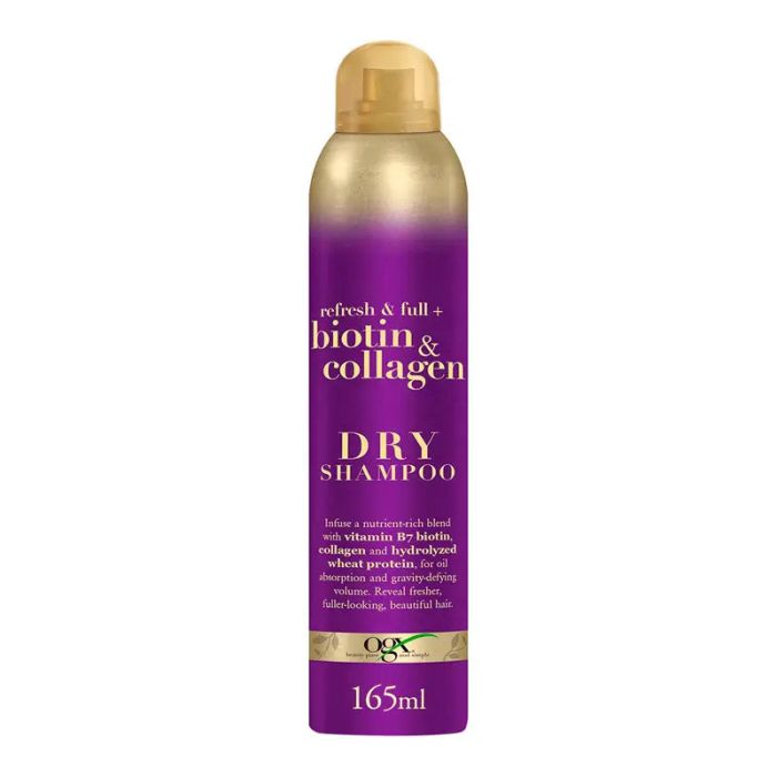 Champú Seco Biotina y Colágeno de OGX absorbe el exceso de grasa y aporta