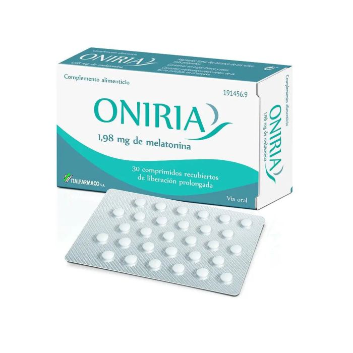 Oniria de ItalFarmaco, es un suplemento alimenticio formulado con melatonina, que es una hormona que segrega nuestro organismo, y funciona para regular el ciclo del sueño y el de vigilia.