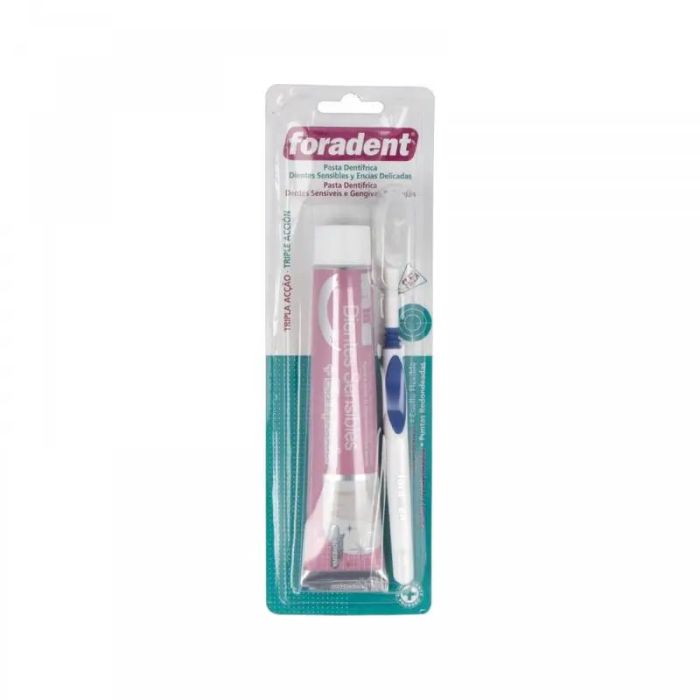 El kit Oradent Dientes Sensibles Foradent incluye un cepillo dental especial y