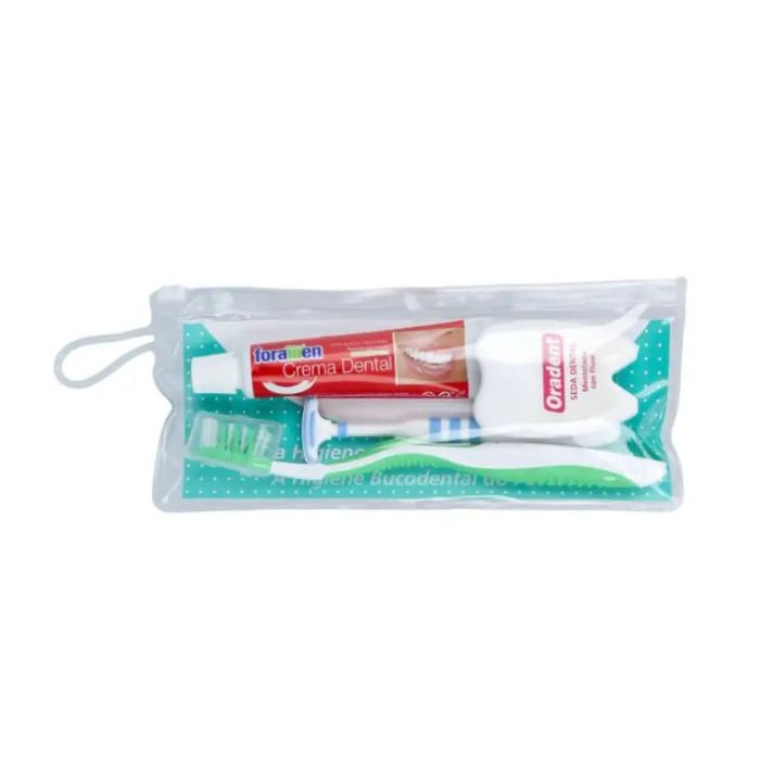 El neceser Oradent con lengüeta es ideal para llevar sus productos de higiene