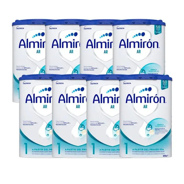 Pack 8 X Almirón AR 1, Leche de Fórmula para Bebé Anti Regurgitación, desdePrimer Día, 800g