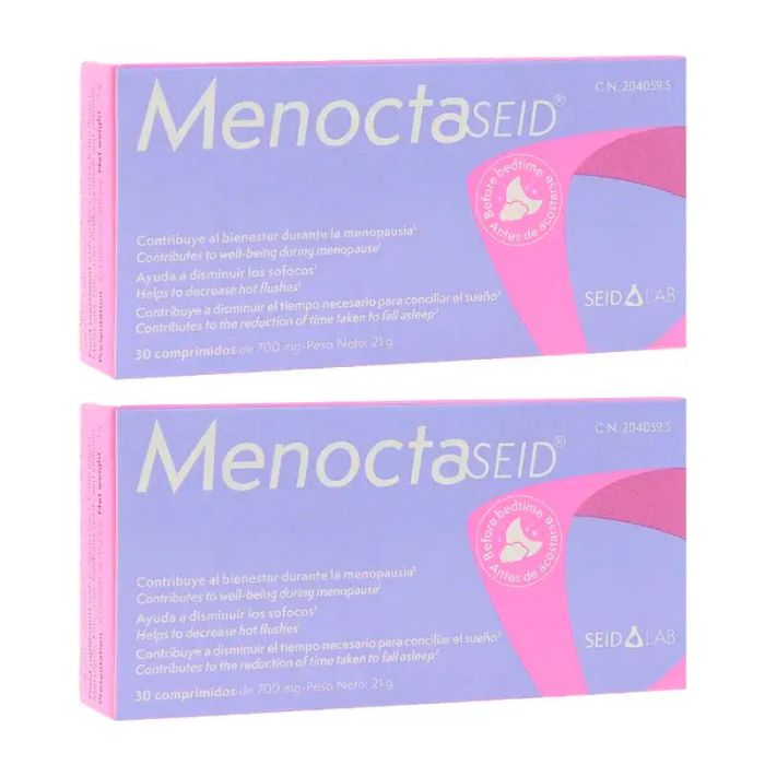 Menocta es un complemento alimenticio elaborado por Seid Lab para llevar una opción saludable, libre de fitoestrógenos y hormonas, a aquellas mujeres que se encuentran en la época de la menopausia. Para tal fin, la marca ha recurrido a plantas medicinales que favorecen la producción de serotonina, debido a que este neurotransmisor se ve afectado durante el climaterio. De ahí que se produzcan las alteraciones nerviosas, los sofocos y el insomnio, ya que la serotonina también es necesaria para la formación de la melatonina. De esta manera, la presencia del 5HTP el extracto de polen y de cimicífuga, contribuyen a relajar el sistema nervioso, para mejorar el estado de ánimo y la calidad del sueño. De igual forma, apoyan el centro termorregulador que se encuentra en el hipotálamo y que se altera debido a la falta de estrógenos. De esta manera, ayuda a aliviar los sofocos y el exceso de sudoración, mientras la melatonina favorece el adecuado descanso. Esto para evitar los dolores de cabeza y las molestias generales que produce el insomnio, así como para optimizar los procesos regeneradores que se producen durante el descanso. También contiene vitamina B6 que participa en la transformación de los alimentos en energía, contribuyendo a aliviar la fatiga y el efecto resaca que puede dejar la melatonina. Además, las vitaminas B12 y el ácido fólico ayudan a fortalecer la hemoglobina y las neuronas. Finalmente, la vitamina E aporta antioxidantes con la finalidad de mejorar el desarrollo de cada célula, contribuyendo así a evitar el envejecimiento prematuro. Es así como favorece el estado de la piel, los huesos y las vías circulatorias, ya que ante la carencia de estrógenos el envejecimiento se acelera exponencialmente. Esta es la razón por la que en este momento los antioxidantes cobran especial importancia y la vitamina E es rica en estas sustancias. Para quién está indicado Farmaciasdirect recomienda el uso de este complemento a mujeres que se encuentran en la etapa de la premenopausia y la menopausia.