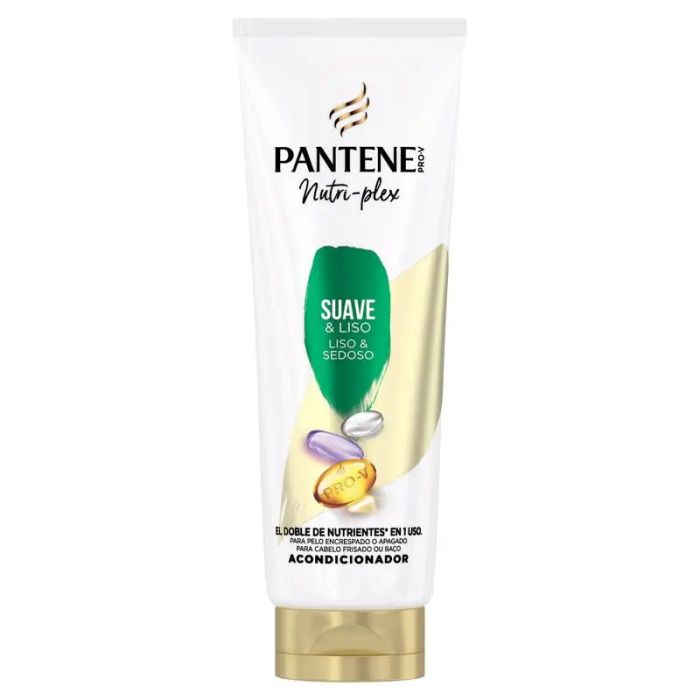 MULTINUTRIENTE DIARIO PARA EL PELO. Alimenta tu pelo con nuestro exclusivo complejo Pro-V de Pantene, que contiene lípidos fortalecedores y antioxidantes protectores. El acondicionador Pantene Nutri-Plex Suave y Liso, enriquecido con el doble de nutrientes, penetra en el pelo para reforzarlo desde el interior. La fórmula de tratamiento intensivo para el cuidado del cabello combate la aspereza y controla el encrespamiento, dejando el pelo sedoso y suave. * comparado con nuestros champús acondicionadores