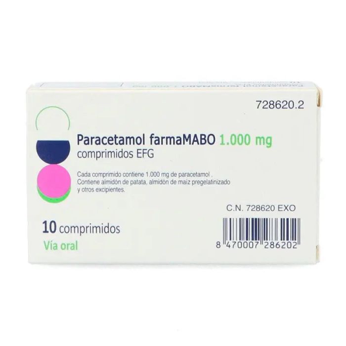 Paracetamol Mabo 1 gr comprimidos Efg, 10 comprimidos