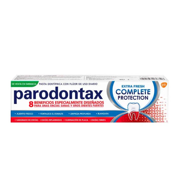 Parodontax Complete Protection Extra Fresh es una pasta de dientes 8 beneficios especialmente diseñados para ayudar a mantener las encías sanas y los dientes fuertes.