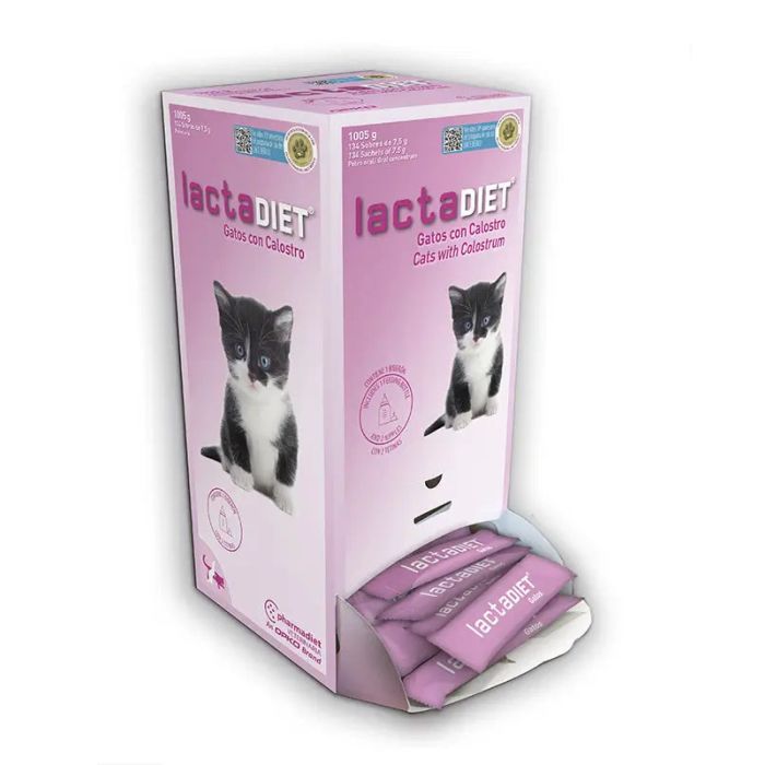 Lactadiet leche maternizada con Calostro y Omega 3 para gatitos. Leche maternizada instantánea en polvo para la alimentación de gatitos desde el nacimiento hasta el destete, a base de leche descremada enriquecida con Calostro, Omega 3 (DHA y EPA), Colina, Vitaminas y Oligoelementos.