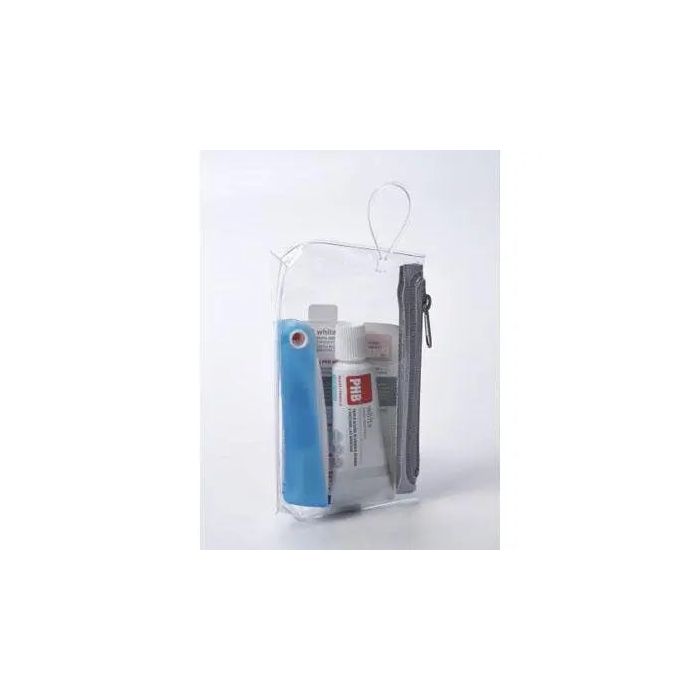 cortos. Está compuesto por una bolsa de plástico con cierre, un cepillo plegable