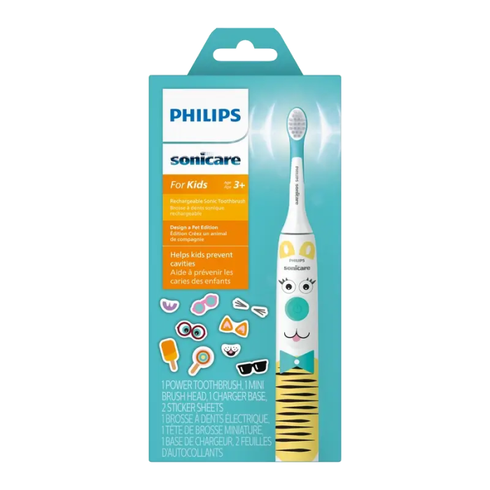 Ayuda a crear hábitos de cepillado saludables con Sonicare para niños. Es seguro y suave paralos dientes y encías en crecimiento, y ayuda a prevenir las caries. Nuestra edición especial Design a Petincluye divertidas pegatinas para que los niños lo hagan suyo.Haz que el cepillado sea divertidoCrea tu propio diseño personal con divertidas pegatinas reutilizablesLa aplicación gratuita Sonicare For Kids les ayuda a cepillarse mejorAyuda a los niños a evitar las cariesLa tecnología Sonicare ayuda a evitar las caries