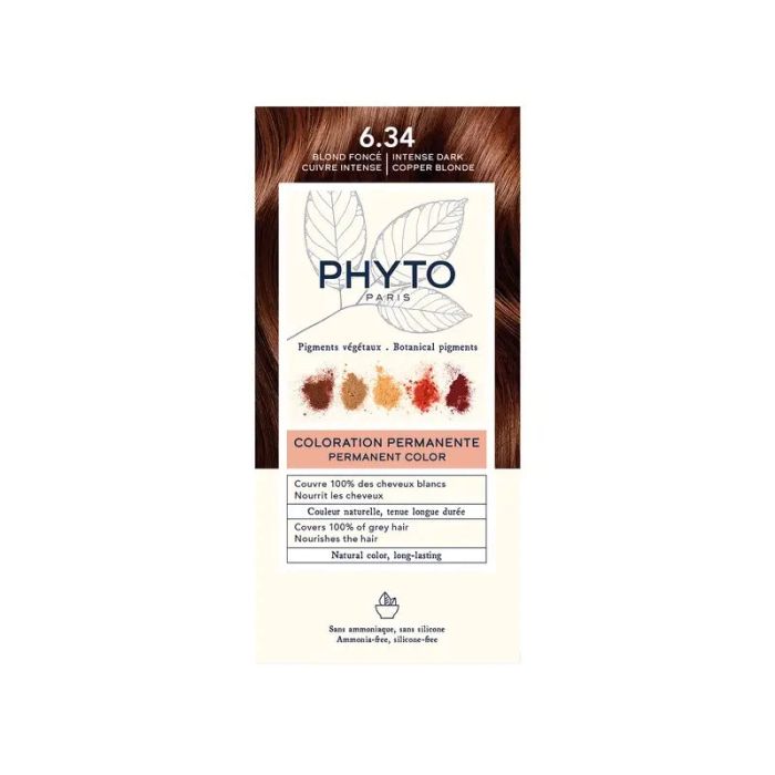 Phyto Coloración 6.34 Rubio Oscuro Cobrizo - Kit Coloración Permanente, 110 ml