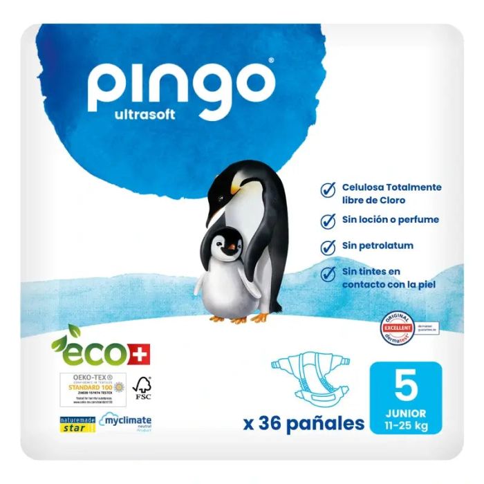 Pingo Pañales Ecológicos Talla 5 Junior (11-25 kg), 36 Unidades