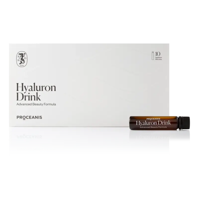Hyaluron Drink 21x10ml de Proceanis es una bebida compuesta de hialurónico vegano puro de fácil metabolización. Permite que el cuerpo lo use según sea necesario, lo que lo convierte en un complemento dietético ideal. La fórmula de Proceanis, que combina valiosos nutrientes y extracto de granada rico en vitaminas, comienza donde se detienen otros cosméticos: en el fondo de nuestro organismo. Y, por lo tanto, promueve la conservación y salud de piel, cabello, uñas, así como cartílago y tejido conectivo corporal, para una frescura visible y un equilibrio notable. La hidratación hace que nuestro cuerpo esté vivo y radiante. Nuestra piel es el espejo de nuestro equilibrio interior, especialmente nuestro equilibrio de agua. Esta bebida de ácido hialurónico, que se toma diariamente de forma simple y natural con la comida, apoya este proceso natural de hidratación. Los resultados del Hyaluron Drink de Proceanis son visibles entre 6-8 semanas después de la primera toma.