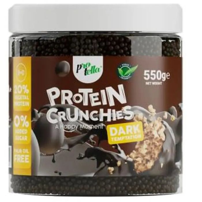 Las Bolitas Crunchies de Chocolate Negro de Protella son perfectas para añadir un toque crujiente y sabor a chocolate a tus postres y snacks. Ideales como topping para helados o como snack.