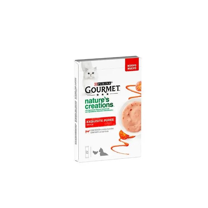 PURINA GOURMET NATURE'S CREATIONS Exquisito Puré Snack Liquido con Buey y TomateAlimento complementario para gatos adultos.Receta con ingredientes naturales seleccionados.Bolsitas en porciones de 10g para cada uso.Servir en un palto, directamente desde la bolsita o con una gota en un dedo.Características:Alimento complementario para gatos adultos.Receta con ingredientes naturales seleccionados.Bolsitas en porciones de 10g para cada uso.Servir en un palto, directamente desde la bolsita o con una gota en un dedo.Sin colorantes, conservantes ni aromatizantes añadidos.