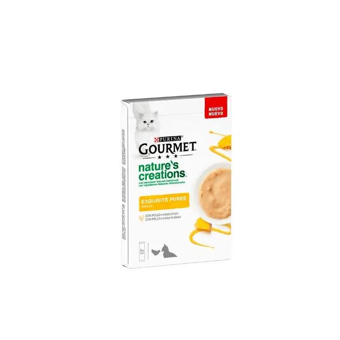PURINA GOURMET NATURE'S CREATIONS Exquisito Puré Snack Liquido con Pollo y CalabazaAlimento complementario para gatos adultos.Receta con ingredientes naturales seleccionados.Bolsitas en porciones de 10g para cada uso.Servir en un palto, directamente desde la bolsita o con una gota en un dedo.Características:Alimento complementario para gatos adultos.Receta con ingredientes naturales seleccionados.Bolsitas en porciones de 10g para cada uso.Servir en un palto, directamente desde la bolsita o con una gota en un dedo.Sin colorantes, conservantes ni aromatizantes añadidos.