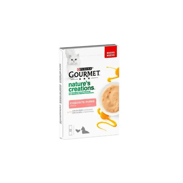 PURINA GOURMET NATURE'S CREATIONS Exquisito Puré Snack Liquido con Salmón y ZanahoriaAlimento complementario para gatos adultos.Receta con ingredientes naturales seleccionados.Bolsitas en porciones de 10g para cada uso.Servir en un palto, directamente desde la bolsita o con una gota en un dedo.Características:Alimento complementario para gatos adultos.Receta con ingredientes naturales seleccionados.Bolsitas en porciones de 10g para cada uso.Servir en un palto, directamente desde la bolsita o con una gota en un dedo.Sin colorantes, conservantes ni aromatizantes añadidos.