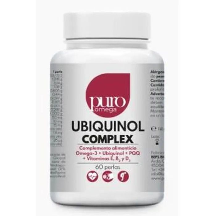 Puro Omega Ubiquinol Complex es un suplemento en forma de 60 perlas que combina