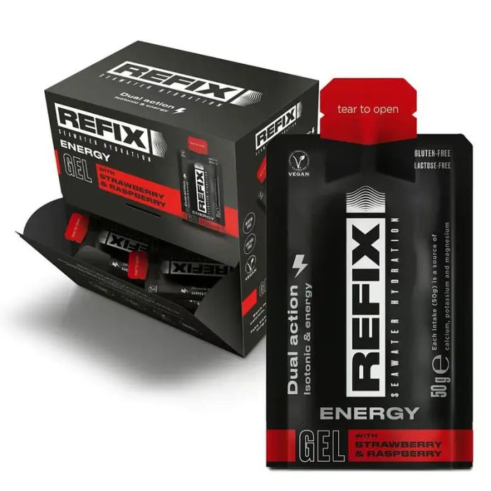 larga duración. El gel REFIX ofrece 23g de carbohidratos y es fuente de calcio,