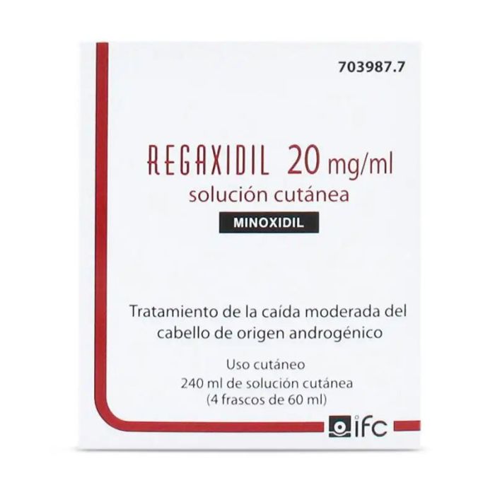Regaxidil 20 Mg/ ml Minoxidil Solución Cutánea 4 Frascos de 60 ml