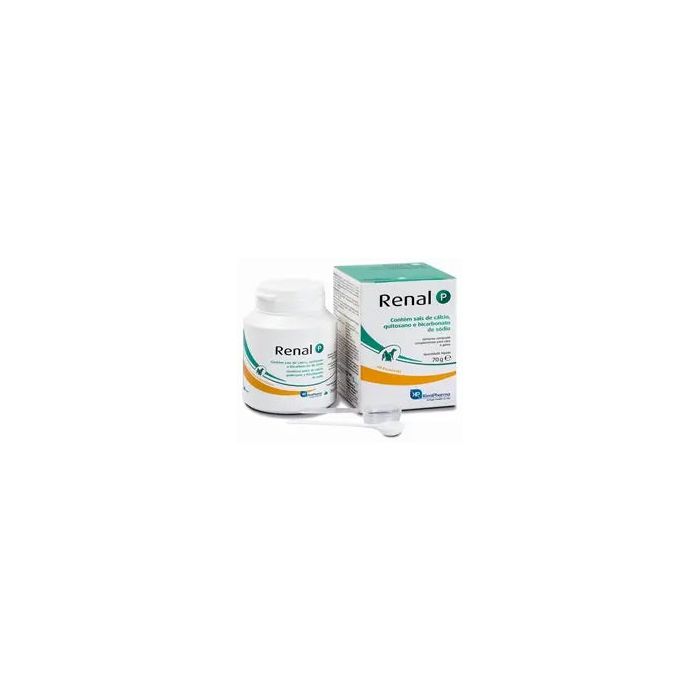 Renal® P _Apoyo para mejorar la función renal.Componentes principales:sales de calcio; Bicarbonato de sodio; quitosano Indicaciones:Ayuda a la función renal en caso de insuficiencia renal crónica. Renal ® P puede utilizarse solo o en combinación con los tratamientos habituales para la insuficiencia renal crónica y con dietas específicas para la disfunción renal, según las indicaciones de su veterinario. Modalidad de empleo:Mezclar Renal ® P con alimentos de acuerdo al peso corporal:1 medida pequeña por 2,5 kg1 medida grande por 10 kgLa dosis diaria se puede dividir en 2-3 administraciones, según el número de comidas. Administrar durante 30 días, o por períodos más largos, según lo aconseje su veterinario. Los animales deben tener acceso permanente al agua. Presentación:polvo apetecibleenvase de 70g