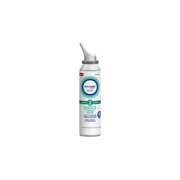 Rhinomer Plus 2 Fuerza Media: Agua de mar hipertónica 100% natural para Adultos y niños a partir de 6 años. Para el alivio natural de la congestión nasal en casos de, p. ej. resfriado, alergias nasales y rinosinusitis