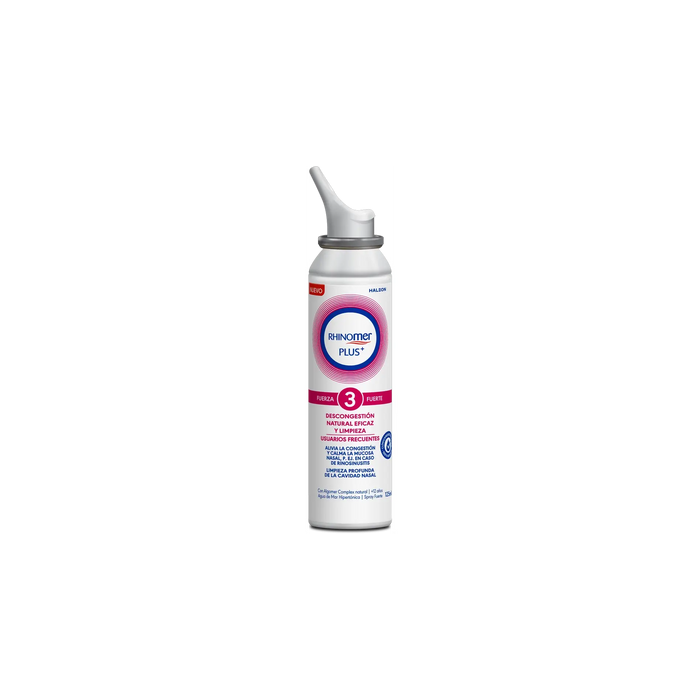 Rhinomer Plus 3 Fuerza Fuerte: Agua de mar hipertónica con Algomer Complex 100% natural, para episodios frecuentes de sinusitis. Spray Nasal de 125 ml con fuerza fuerte para adultos y niños a partir de 12 años.