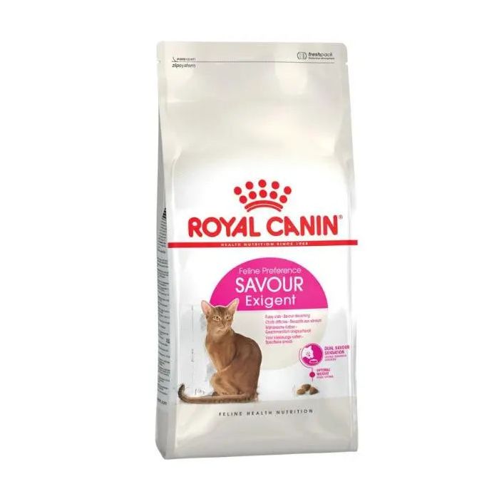 Royal Canin Exigent Savour es el alimento perfecto si tu gato tiene más de un año y es de paladar caprichoso.Si llevas mucho tiempo dándole la misma comida o ves que le cuesta ingerir su ración diaria, prueba a darle Royal Canin Exigent Savour y verás con qué gusto lo saborea. Este producto está diseñado y formulado con el objetivo de gustar a los gatos sin que a lo largo del tiempo se cansen de comerlo.Tu gato estará contento con la explosión de sabores que producirá en su boca la mezcla de los distintos tipos de croqueta que se presentan en el envase.Tú te quedarás tranquilo porque darás a tu mascota los nutrientes que necesita, que le ayudarán además a mantener un bello pelaje.No podrás pedirle más a la comida de tu gato, porque Royal Canin Exigent Savour está elaborado con una fórmula de contenido moderado en energía para ayudarle a mantener el peso ideal.Estas croquetas se han diseñado para aportar a tu minino un alimento completo, equilibrado y saludable:Formulado para tener el sabor más adecuado para el paladar de tu gato.Cuida la belleza del pelaje de tu gato. Por su composición de nutrientes activos, con biotina y aceite de borraja rico en Omega 6. Previene el envejecimiento. Con su elevado índice de Vitaminas C y E, que frenan el ataque de los radicales libres.Mantiene su peso ideal. Gracias a sus niveles moderados de energía.