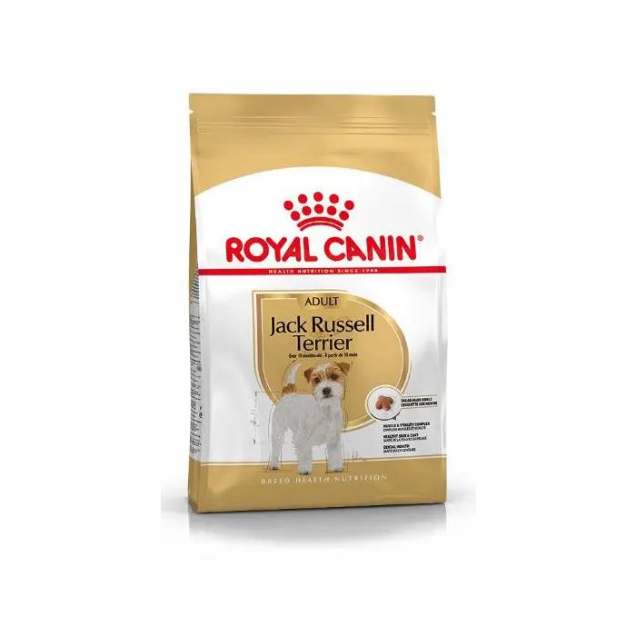 Royal Canin Adult pienso para perros de raza Jack Russell TerrierLos Jack Russell son unos perros inteligentes, simpáticos y enérgicos con un gran temperamento y valor. Tienen una complexión fuerte, con un cuerpo musculoso y robusto. Estas características hacen que la raza necesite una alimentación adaptada a sus necesidades, que le aporte un buen nivel de proteínas, grasas y energía cada día.El pienso Royal Canin Jack Russell Terrier Adult cubre las necesidades nutricionales específicas de estos perros a partir de los 10 meses de edad. Su fórmula tiene un alto contenido en proteínas para mantener la masa muscular de tu peludo y que siga teniendo la misma vitalidad de siempre. Por otro lado, añade aceite de borraja, que activa el metabolismo ayudando a mantener un peso corporal ideal. Además, el aceite es una fuente natural de ácidos grasos omega 6 que refuerzan la barrera de la piel y la mantienen saludable, así como un pelaje suave y con brillo.Este pienso para Jack Russells también piensa en su dentadura. Por eso, sus croquetas son crujientes y tienen una forma y una textura especial, con calcio añadido, para reducir el sarro y contribuir a la salud dental.
