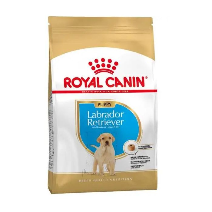 Pienso Royal Canin para cachorros de labrador retriever El pienso Royal Canin labrador retriever junior está indicado para la alimentación específica de cachorros de esta raza (desde los 2 a los 15 meses). Los ingredientes que conforman su fórmula están pensados teniendo en cuenta todas sus necesidades alimenticias y está elaborado con todos los nutrientes que necesita para crecer sano y fuerte.Esta raza se caracteriza por su belleza, porte atlético y porque son animales muy juguetones, a los que les encanta estar con sus dueños. Usualmente no sufren enfermedades específicas, aunque pueden llegar a padecer sobrepeso, deterioro de la visión o problemas de cadera y codo. Por eso es fundamental darles una buena dieta desde pequeños para que crezcan en perfectas condiciones.Royal Canin Labrador Retriever Junior es un pienso adaptado a las necesidades de estos cachorros, con un alto aporte de proteínas para fortalecer sus músculos, y solo un 14% de materia grasa, cantidad más que suficiente para mantenerlos con suficiente energía a diario. Para que sus articulaciones se desarrollen correctamente contiene condroitina y glucosamina. Además, calcio y fósforo para garantizar una buena consolidación ósea.Todos los ingredientes que contiene son de fácil asimilación para proteger su tracto digestivo, con mucha fibra para activar la flora intestinal y regular las deposiciones. Además, lleva ácidos grasos omega 3, minerales y vitaminas para fortalecer y nutrir a tu mascota. Este pienso también contribuye a la higiene bucodental de tu mejor amigo, previniendo la formación de sarro y dándole un agradable aliento. La firma Royal Canin es líder en el mundo de la nutrición para animales en España. La eficacia, la innovación y el respeto por los animales han estado entre sus principios desde su fundación en 1967, y sus piensos son una muestra de la aplicación de la última tecnología para lograr fórmulas específicas que garanticen el bienestar de tu mascota.