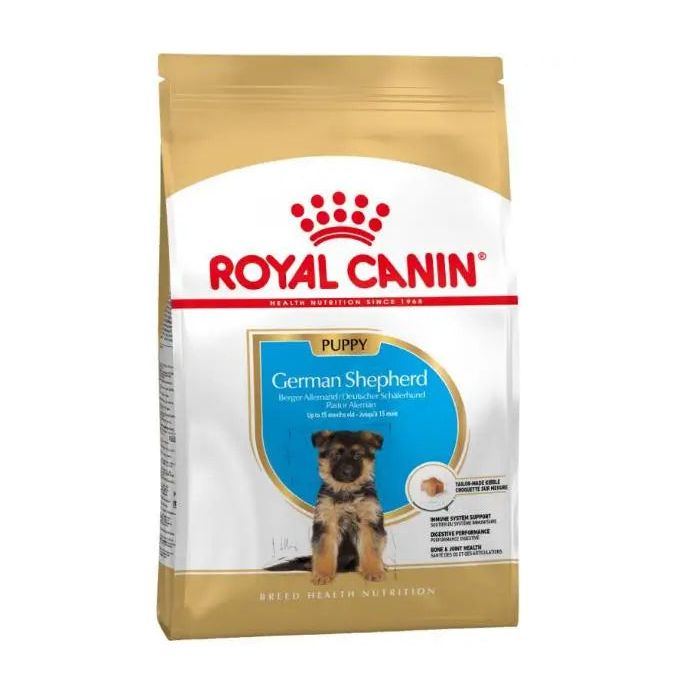 Pienso para cachorros de pastor alemán Royal Canin Pastor Alemán JuniorSi te preguntas qué dar de comer a tu cachorro de pastor alemán, Royal Canin responde a tus cuestiones. Ni todos los perros son iguales, ni todos los alimentos están pensados para las mismas razas. Por eso, este pienso para perros está indicado para la alimentación específica de cachorros de pastor alemán desde los 2 a los 15 meses. Su fórmula atiende a la perfección sus necesidades nutricionales y está elaborada con los ingredientes que necesita para crecer en unas condiciones excelentes.El pastor alemán se caracteriza por su porte elegante y gran belleza. Su pelo sedoso y lacio, así como su buen carácter e inteligencia son algunas de sus señas de identidad. Es fundamental una buena alimentación desde pequeños para que se conviertan en perros fuertes y vitales. Aún así, requieren cuidados específicos para evitar problemas del aparato digestivo, dermatológicos, musculares, articulares o alérgicos.Royal Canin Pastor Alemán Junior es un pienso adaptado a las necesidades que demandan estos cachorros. Ofrece un alto contenido en proteínas (30%) para endurecer su masa muscular y un 16% de materia grasa para mantenerlo enérgico. Además, está enriquecido con antioxidantes que permiten el óptimo desarrollo de su corteza cerebral y refuerzan sus defensas.Este alimento para cachorros de pastor alemán en forma de sabrosas croquetas es rico en condroitina y glucosamina para que sus articulaciones estén siempre en perfecto estado. El calcio y el fósforo garantizan una buena consolidación ósea, mientras que los quelantes del calcio evitan la formación de sarro y mal aliento. Ofrece aminoácidos y omega 3, que aseguran un pelaje brillante y una piel a punto, así como ácido linoleico y cinc, que se encargan de nutrir la dermis. Además, contiene una fuente de vitaminas y minerales que crea una barrera de prevención ante posibles problemas dermatológicos. La marca Royal Canin lleva toda la vida siendo un referente en España en alimentación animal. Añade a sus recetas nuevos productos basándose en la calidad y en el mantenimiento de la salud de tu mascota. Bajo unas premisas de responsabilidad, eficiencia y reciprocidad trata de dar al consumidor lo que se adapta a sus necesidades, y mantiene una tecnología de vanguardia.